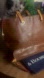 Features sturdy leather shoulder straps, snap closure, interior zip pocket, and a removable matching wristlet pouch. Leather shows natural wear and patina that adds character and softness over time.