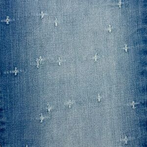Featuring a light wash with a subtle cross-stitch distressed pattern on the front and a classic 5-pocket design, they’re perfect for everyday wear.