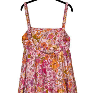 Free People Park Slope Babydoll Tiered Maxi Dress Size M Pink Floral Blossom 70s