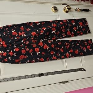 St. John, Sport, Black, Rose, Red, Floral, Pants, Cotton, Casual, Spring, Office
