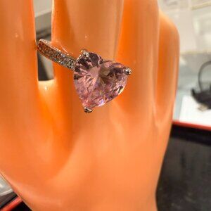 Heart Cut Pink Cubic Zirconia Ring With Accents In Silver Tone 7