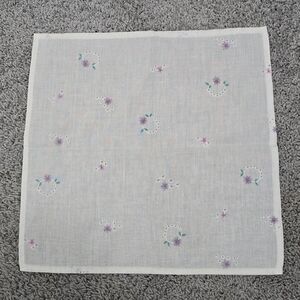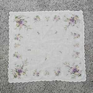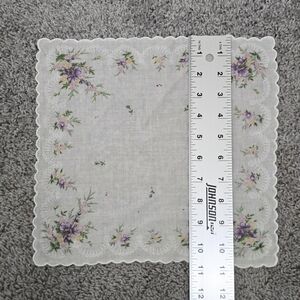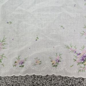VTG Floral Handkerchief Lot Hankies Set of 3 White w/ Purple Pink Yellow Flowers