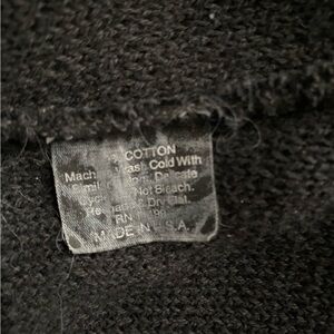 Design: Black knit sweater with an embroidered graphic of a red and silver motorcycle and the "Harley-Davidson" logo.