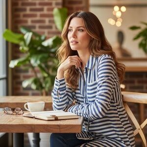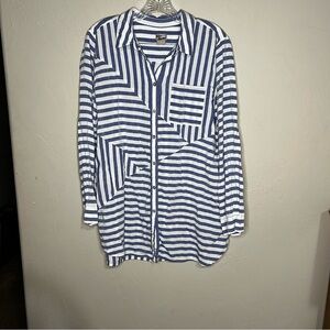 Chicos Blue White Asymmetrical Nautical Striped Tunic Top