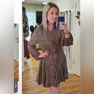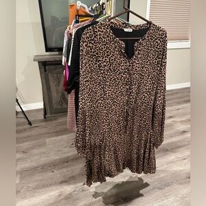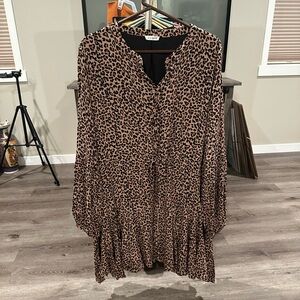 Kori Women’s plus-size Tan/Black Cheetah-print Balloon-sleeve Mini Dress❤️❤️2X