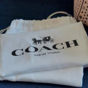 Coach Script and Horse & Carriage logo plate on center bottom front of bag