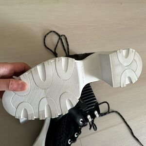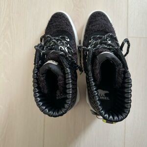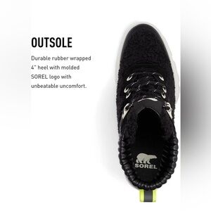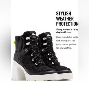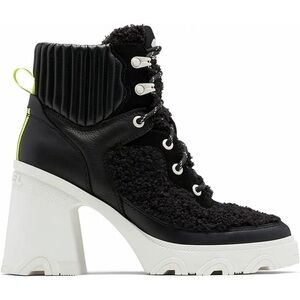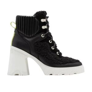Say hello to the perfect, most versatile boot. The ankle height makes this style easily transition from day to night. Wear them with your favorite skinny jeans and tee for a more laid back look, or pair them with your favorite mini dress and jacket for a night out on the town. Waterproof full grain leather and suede uppers. Faux shearling in the quarter and tongue. Footbed die-cut memory EVA, synthetic topcover. Molded rubber with diamond texture. Molded rubber outsole with high traction design and texture. Durable rubber wrapped heel with molded SOREL logo. Heel height - 4". Platform height - 1/2". Shaft height - 4 1/2". Lace length - 53". Color: black