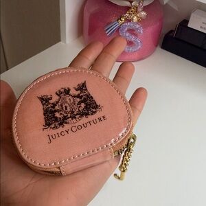 Elegant blush pink coin pouch by Juicy Couture. Features a gold-tone hook and zipper.