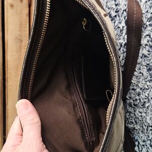 Step into the world with this top of the line Coach Signature Tan and Brown Crossbody bag. Fashionable and functional with an adjustable strap and multiple pockets. Express your interchild hood by flashing your flare in a functional and a conventional manner.
