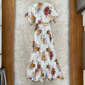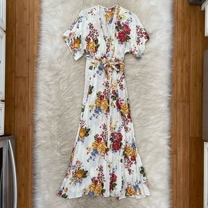 Reformation Rosey Maxi Wrap Dress Floor Length Gown Short Sleeve Pink Floral