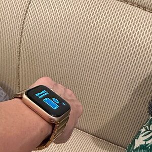 Watch is used but in great working condition. There are scratches to the bottom of the screen and side metal which is reflected in the low price. Watch is rose gold, 40mm and has been fully reset to manufacture settings so it’s ready to connect to new phone. Rose gold band is included but charger is not included.