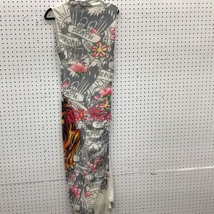 Ed Hardy Design Dress, Size Medium, Color Beige Multi Color, Material Polyester