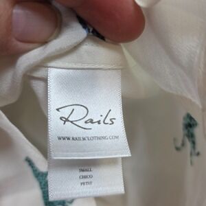 Rails Kathryn Blouse Top White Button Down Cheetah Wild Cats Small EUC