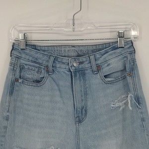 American Eagle Women's Mom Jean Size 2 Regular Light Wash Distressed Straight