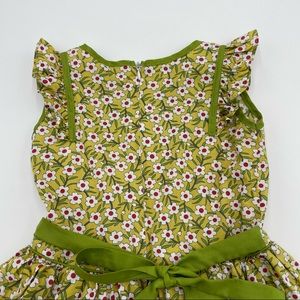 Vintage Child’s Dress Bright Floral Print Frills Ruffles Sleeveless Tie Bow 90s