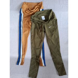 Nike Dri-Fit Women 2 Of Medium Waistband Performances Green/Orange Ankle Pants