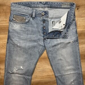Diesel Jeans Men 32x31 Blue Safado Slim Straight Leg Thrashed Denim Pants 0806K