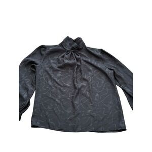 Vtg Women's Sz 12 Helene St Marie Black Secretary Blouse fringed Rope Design