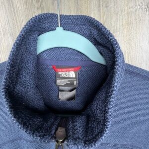 Full zip textured polyester lightweight soft shell jacket. Features chest pocket and TNF logo. Approx measurements pit to pit 22.5”, Length from Shoulder to Bottom 28”. See light white mark on back of left sleeve in photos. GUC 🚭