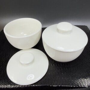Tatung Taiwan China Ivory Ceramic Cups Sake Dipping Cups Set 2 W Lids Vintage