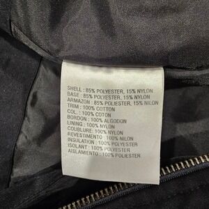 Keywords: Liz Claiborne jacket, black parka, hooded jacket, drawstring waist, quilted lining, casual outerwear, zip front jacket, button closure, fall fashion, winter coat, utility jacket, outdoor wear