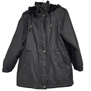 Liz Claiborne Black Hooded Drawstring Waist Parka Jacket Women Medium