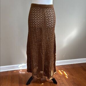Beautiful Peruvian Connection 100% Pima Cotton Brown Casual Boho Knit Maxi Skirt Size S