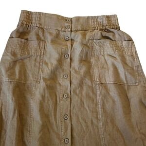 Wrap London 100% Linen Skirt Bronze Brown Button Front Pockets Size US 18 / UK 22 NWT