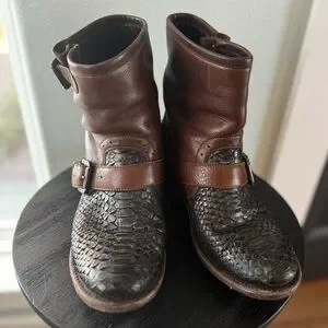 Muro Women’s 8 Snake Western Brown Moto Biker Leather Boot Grunge Boho Festival