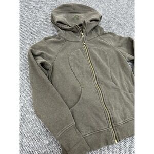 Lululemon Women's 10 Scuba Hoodie Light Cotton Fleece in Dark Olive Green. Condition is Pre-owned - Excellent. Shipped with USPS Ground Advantage.