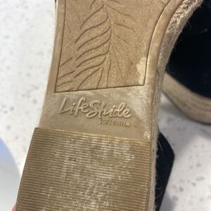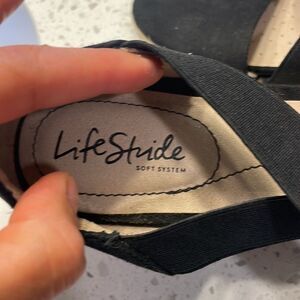 Life Stide woman’s black sandals. They have a little bit of a wedge
