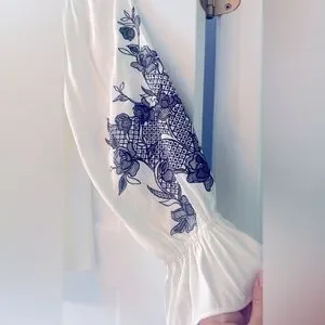 Elegant, classy, embroidered, gathered, blousy, ballon sleeve, billowy, date night, dressy, feminine
