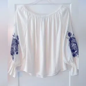 White House Black Market Embroidered Off-Shoulder Blouse