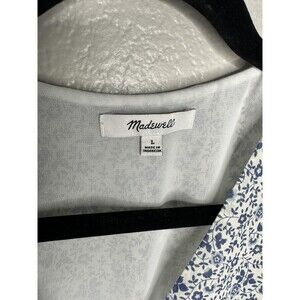 Madewell Shirt Womens Large Floral V Neck Peplum Short Sleeve Casual Blue White