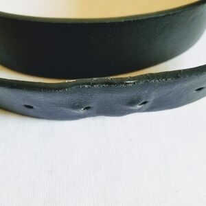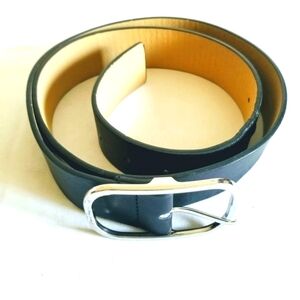 New York and Company Black Faux Leather Belt Medium. Silver tone hardware. Unisex. Pre-owned good used condition. Minor flaws due to normal wear. No rips, tears or stains. Please see pictures. Approximate Measurements:
