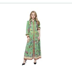 Step out in style with this chic green maxi dress, adorned with a stunning pattern. Ideal for any occasion.