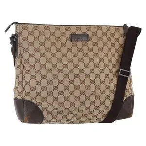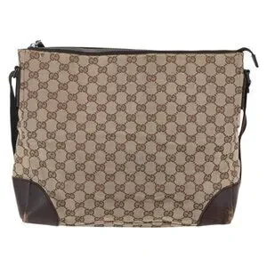 GUCCI GG Canvas Shoulder Bag Beige Silver 110054 Auth 151886