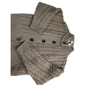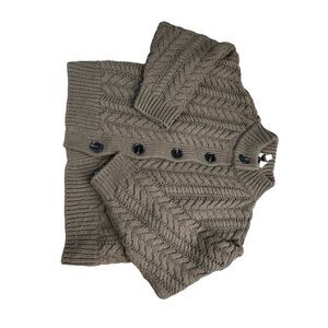 Something Navy Small Cable Knit Brown Long Sleeve Sweater Cardigan Rust Crew