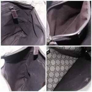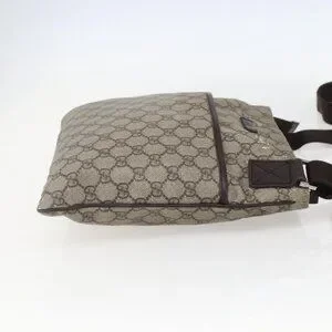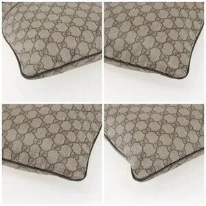GUCCI GG Supreme Shoulder Bag PVC Beige Silver Auth 151520