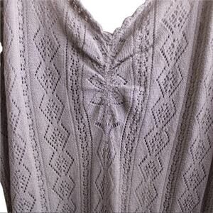 Keywords: LoveShackFancy dress, Lace knit, Midi slip dress, Bohemian, Romantic, Vacation, Resort wear, Lightweight, Beach cover-up, Sheer, Scalloped trim, Self-tie belt