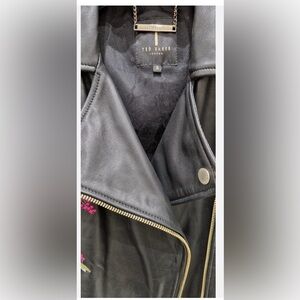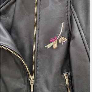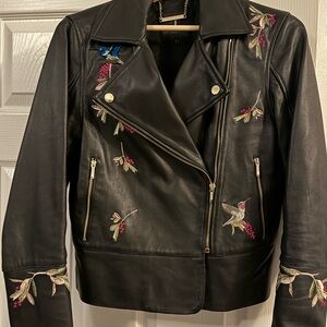 Ted Baker Black Leather Jacket with Floral Embroidery Size 3 equals US Size 8