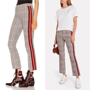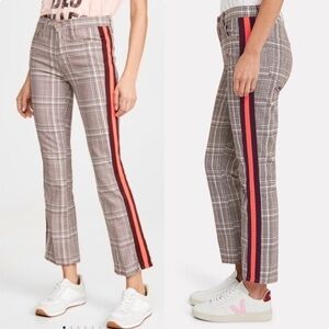 NWT MOTHER 90s Plaid Check High Rise Sporty Stripe Kick Flare Leg Ankle Jean 26
