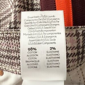 MOTHER's ultra-flattering Insider jeans are updated this season in plaid denim. Slightly flared, they're styled with sporty mauve and neon coral racing stripes.