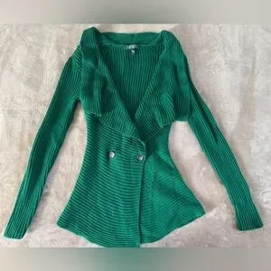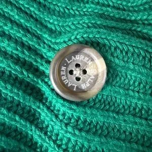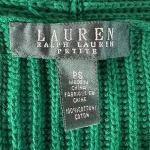 Lauren Ralph Lauren Green Ribbed Wrap Cardigan Sweater Petite Small