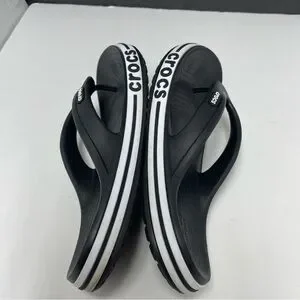 CROCS Flip Flops Mens 9 Womens 11 Black/White Bayaband Logo ligheweight comfy