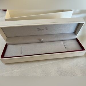 Elegant Shane Co. gift bag and bracelet box with a striking red ribbon. Perfect for special occasions.