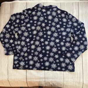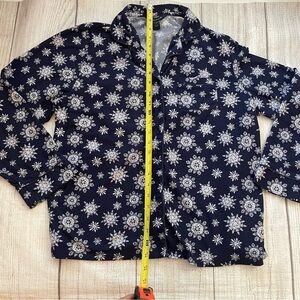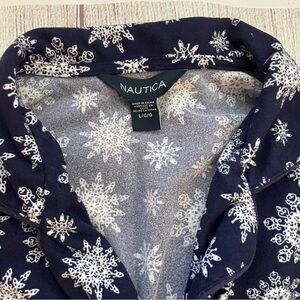 NAUTICA Women’s Navy & White Snowflake Pajama Top Flannel Winter Size Large