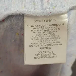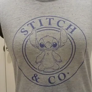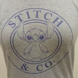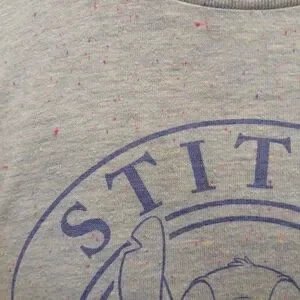 Size XS (1). Size is loose fitting. Stitch, from the movie Disney Lilo and Stitch, on the front. Very soft material and in good condition. Little bits of color sprinkled over the shirt for a cute effect.