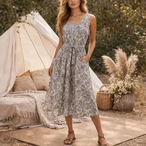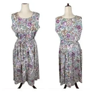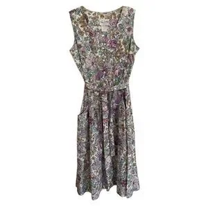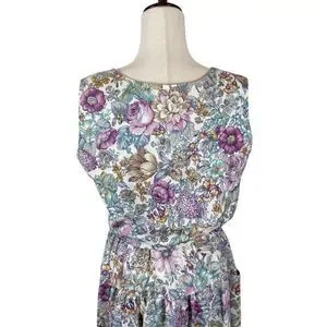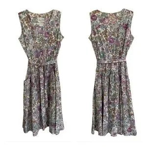 Vintage New Looks floral cottagecore wide strap belted sundress womens Modest