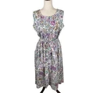 Vintage New Looks Granny floral wide strap belted sundress womens*16 Modest Boho